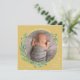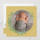La conception de carte de vœux photo de vacances sur le thème des fêtes de Noël comporte une verdure peinte à la main à l'aquarelle dans une couronne de cercle doré sur un fond doré. Votre image est encadrée simplement et le design est accentué de taches d'aquarelle et de baies de houx assorties. #Noël #Fêtes #CartesDeNoël