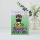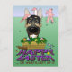 Les produits de Pâques lisent "Joyeux Pâques... ou ce qu'il en reste". Doté d'un berger allemand coquin portant des oreilles de lapin, la queue de lapin dans sa bouche, assis dans un panier de pâques entouré de son lapin de pâques au chocolat et de ses oeufs de pâques. Le lapin de Pâques, moins ses oreilles et sa queue, fuit pour sa vie.