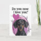 Carte customisée Dachshund Valentine's Day. Options de personnalisation : modifier l'accueil, le nom du chien, la couleur de police.