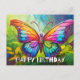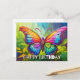 Cette carte postale unique illustre un papillon flottant coloré. Ce salut d'anniversaire serait vraiment merveilleux pour les amis, la famille et les collègues.