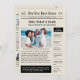 Les cartes de vacances de style journal sont une façon amusante et unique de récapituler les moments forts de l'année tout en envoyant des vœux sincères de la saison à la famille et aux amis. Conçu pour ressembler à une page de couverture de journal classique, ce modèle recto-verso vous permet de mettre en valeur une grande photo de famille, des titres personnalisés, des étapes importantes et des moments mémorables dans un format éditorial créatif. Avec de l'espace pour les récapitulatifs de voyage, les célébrations, les réalisations et même les mises à jour sur les animaux de compagnie, cette mise en page entièrement personnalisée vous permet de transformer l'année de votre famille en un souvenir imprimé magnifiquement conçu. La mise en page noire et blanche épurée associée à des tons crème neutres donne à cette carte un look intemporel et professionnel, tandis que des titres ludiques comme « Quelle année ! » et « Dans d'autres nouvelles... » ajoutent du charme et de la personnalité. Idéale pour les familles qui veulent aller au-delà des cartes photo traditionnelles, cette carte de vœux de vacances sur le thème du journal offre le mélange parfait de narration et de