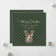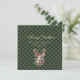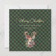 Elégante carte de Noël de buffle vert et or, avec une silhouette de rennes d'or et une vignette de neige sur un arrière - plan plaid de buffle vert et noir. Un faux titre en feuille d'or écrit à la main ajoute un look plus festif à cette carte de vacances. Personnalisez facilement cette carte verte de vacances plaid avec votre nom de famille et votre texte. L'effet de feuille d'or n'est simulé que dans l'illustration.