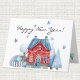 Maison d'hiver rouge fantaisiste, arbres enneigés et éléments assortis minimaux décorent cette carte de vœux Bonne Année 4"x5.6" . Modifiez ou supprimez facilement le texte sur le devant, à l'intérieur et à l'arrière pour le personnaliser à l'aide du modèle fourni. Également disponible en format 5"x7". Qualité d'impression très bien notée et excellente. Voir "À propos de ce produit" pour plus d'informations.