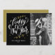 Send a personal and beautiful greeting with this personalized Happy New Year card, featuring elegant calligraphy and charming greenery accents. Customize the card by uploading your favorite photos, adding your names, and crafting a heartfelt message. The combination of modern typography and nature-inspired elements makes this card a sophisticated choice to send your warmest wishes. Whether for friends, family, or business associates, it’s the perfect way to ring in the new year.