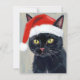 Black Cat Christmas Painting Santa Hat Holiday Card