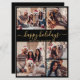 Moderne Élégant Simple Noir et Or 5 Photo Collage Joyeux Vacances Script Christmas Holiday Card. ++ VEUILLEZ NOTER QUE CES CARTES DE TAILLE 6,5" X 8,75" SONT PLUS GRANDES QUE LA MOYENNE, EN RAISON DE LA TAILLE PLUS GRANDE DE LA CARTE, IL EST PRESQUE CERTAIN QUE LES COÛTS POSTAGE SERONT PLUS ÉLEVÉS. SI VOUS PRÉFÉREZ LA TAILLE STANDARD 5X7", VOUS POUVEZ TROUVER LA CARTE À CE LIEN : https://www.zazzle.com/happy_holidays_calligraphy_photo_collage_christmas_holiday_card-256888866811355533 OU FAIRE DESCENDRE, ET VOUS TROUVEREZ FACILEMENT LA CARTE 5X7 DANS LA COLLECTION CI-DESSOUS. +++ Ce modèle festif, minimaliste, fantasque de cinq (5) photos de vacances comprend un joli montage photo collage photo et Noël" texte de salutation qui est écrit dans une belle main lettré tourbillonnant swash-tail police calligraphie ou script de typographie en or sur arrière - plan de couleur noire. À l'envers avec votre modèle de message de bienvenue avec un petit doodle de coeur et un modèle photo horizontal. Jolie carte de voeux pour votre famille et vos amis pendant la période de Noël.