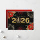 A beautiful Chinese New Year design featuring the number 0 of the year 2026 as a stylized horse medallion in gold glitter texture. Wish your family and friends good fortune and prosperity with this black and gold holiday card. You can change the greeting on the back of the card or leave it as it is.