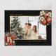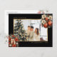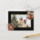 Elegant black and gold photo Christmas postcard featuring a black photo frame adorned with Christmas ornaments and flowers. Easily personalize this botanical holiday postcard with your photo and text.