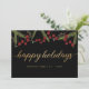 Send warm season’s greetings to clients, customers, and colleagues with this elegant black holiday business greeting card featuring illustrated winter greenery and red berries along the top. The shimmering faux-gold script “happy holidays” adds a festive touch, while the customizable business name and year make it perfect for professional branding. The back includes a thoughtful message of appreciation with space for your company name and logo. Ideal for corporate holiday mailers, customer appreciation, and end-of-year business correspondence.
