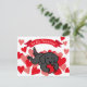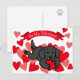 Black Lab Puppy Chewing Heart Valentine Holiday Carte postale pour les fans du Labrador! Un mignon chiot de récupération Black Labrador est allongé sur le ventre et mâche son jouet de coeur rouge sur le sol avec joie! Créé par Naomi Ochiai.