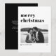 Joyeux Noël! Envoyez vos souhaits de vacances à votre famille et à vos amis avec cette carte de Noël moderne personnalisable. Il présente une typographie rétro et audacieuse avec un accent d'arbre de Noël. Personnalisez cette carte de vacances photo en ajoutant vos propres détails. Cette carte de Noël noir et blanc est disponible en d'autres couleurs.
