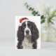 Cartes Pour Fêtes Annuelles Black & White Spaniel Santa Hat Xmas Art