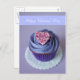 Carte postale horizontale "Heureuse Sainte-Valentin" avec cupcake à coeur violet. Retourner en blanc pour être écrit et adressé à la main.