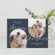 Cartes Pour Fêtes Annuelles Bleu 2 Arc Photos Moderne Élégant Script Noël