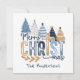 Cartes Pour Fêtes Annuelles Bleu Arbres modernes Christ Joyeux Noël Nom
