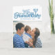 Carte de jour férié photo bleu clair Happy Hanoukka | Envoyez vos voeux Hanoukka à votre famille et à vos amis avec ce carte photo de vacances personnalisable. Il est doté d'un script en lettres bleu clair avec une illustration de menorah. D'autres couleurs sont disponibles.