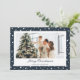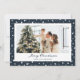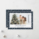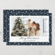 Carte de vacances photo bleu mignonne avec un beau titre de script festif et de petites étoiles sur un arrière - plan bleu clair sur le devant et à l'arrière. L'arrière - plan peut être changé en n'importe quelle couleur. Personnalisez facilement cette carte de vacances minimaliste bleue avec votre photo et le nom de famille.