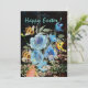 Cartes Pour Fêtes Annuelles Bleu Floral Pâques Noir avec Oiseaux