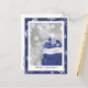 Carte postale Joyeux Noël bleu sur mesure avec neige tombante, flocons de neige et un sac plein de cadeaux de Noël. Autres options de couleurs disponibles.