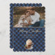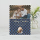 Elégant buffle bleu et or plaid photo Joyeuse carte de Noël avec un accueil de vacances en or écrit à la main et la chute de neige sur un arrière - plan de buffle plaid. Personnalisez facilement cette carte de vacances photo bleu et or avec votre photo, le nom de famille et l'année. Autres options de couleurs disponibles. L'effet de feuille d'or n'est simulé que dans l'illustration.