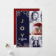 Carte de vœux Bleu & Or JOIE 3 Trois Photo Fêtes de Noël