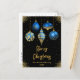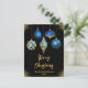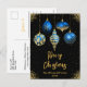 Send warm holiday wishes with this sophisticated Christmas postcard featuring five elegant ornaments in royal blue and gold tones. Each ornament showcases a unique design - floral, snowflake, dripping faux glitter, diamond pattern, and stars - against a rich black background with golden sparkles. The luxurious palette and refined layout make this card ideal for stylish families, formal greetings, or corporate holiday messages. Perfect for those who love modern elegance with a festive twist.