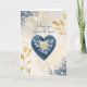 Cartes Pour Fêtes Annuelles Blue Botanical Heart with Gold Script Accents