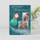 Merry and bright is how we describe this adorable flat Christmas card that features two spots for your favorite photos! Easy to update with a spot for your personal message on the backside of the card. Front features an adorable Santa Clause standing atop a teal-colored ornament dangling from a gold ribbon. A snow covered background and lots of snowflakes round it out on a blue-green background - part of our Blue Christmas Collection. Be sure to update the text on both the front and back prior to placing into your shopping cart.