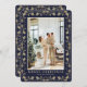 Célébrez les fêtes avec cette carte de Noël bleue élégante avec un holly or sur un arrière - plan bleu foncé. Ajoutez facilement votre photo préférée et votre texte à cette photo bleue Joyeuse carte de Noël.