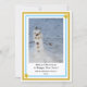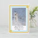 Cute festive little snowman. Gold and pastel blue geometric pattern with yellow gold stars elements. Merry Christmas and Happy New Year in black typography. Insert Family Name and Year. Leave image on front, or Upload your own. Holiday greeting and yellow gold star element on backside. Original Photography Design by TamiraZDesigns.
