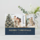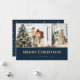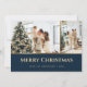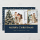 Elégantes cartes de Noël bleu et or avec deux photos sur le devant et étoiles or sur un arrière - plan bleu à l'arrière. Personnalisez facilement ces cartes de Noël photo modernes avec vos images et texte.