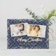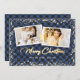 Cartes Pour Fêtes Annuelles Blue Photo Plaid Gold Newlywes Joyeux Noël