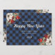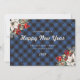 Cartes Pour Fêtes Annuelles Blue Plaid Snow Botanical New Year Card