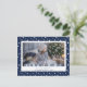 Cartes postales personnalisées bleues de Noël avec étoiles blanches et neige dorée sur arrière - plan bleu. Personnalisez facilement ce bleu Croyez en la magie de la carte postale de la saison avec votre image, texte, année et un nom de famille. Vous pouvez également modifier l'arrière - plan et la police en n'importe quelle couleur.