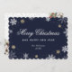 Elegant blue holiday card featuring a charming frame of falling snow, snowflakes and stars against a blue background. An elegant script font is used to add more festive look to this greeting card. Easily personalize this non photo holiday card online.