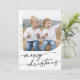 Boho Chic Blanc Noir do-it-yourself Simple Photo Noël Carte de vacances. Le design bohème moderne en noir et blanc présente une calligraphie rustique simple avec un style unique mais classique. Personnalisez l'avant de vos cartes de Noël avec l'année, votre nom de famille et une photo. Inclure un message de bienvenue personnalisé au dos.