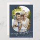 Boho Chic Navy Bleu Merry Bright Photo Christmas Carte. Le design bohème moderne et neutre, muet et moody, présente une calligraphie rustique simple, au style unique mais classique. Personnalisez l'avant de vos cartes de Noël avec l'année, votre nom de famille et une photo. Inclure un message de bienvenue personnalisé au dos.