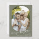 Boho Chic Olive Green Joyeux Photo Lumineux Carte de Noël. La tonalité bohème vert foncé bohème moderne est composée d'une calligraphie rustique simple au style unique mais classique. Personnalisez l'avant de vos cartes de Noël avec l'année, votre nom de famille et une photo. Inclure un message de bienvenue personnalisé au dos.
