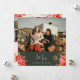 Cette carte de vacances boho hiver fleurie sept photo Noël a un design fantasque et élégant avec des illustrations d'aquarelle vibrante de poinsettias rouges et roses et de la délicate végétation hivernale. Avec des éléments botaniques chics comme le pin, le houx et les baies d’hiver, la palette colorée de la carte, y compris des accents de rose poussiéreux et d’or, ajoute une touche boho à une esthétique de vacances moderne. Ce design festif de décembre mêle une ambiance légère et fantaisiste à un thème floral, parfait pour la saison de Noël.