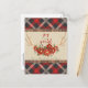 Carte de vœux de vacances | Joie au Monde - avec un bouquet de poinsettias sur un tissu écossais rouge bûcheron avec un vieux bois de grange encastré. Personnalisez le texte. Ceci est un message de vacances non confessionnel approprié pour la famille ou l'entreprise. Toutes les œuvres originales sont la propriété de WhimsicalArtwork™. Ceci fait partie d'une collection de vacances coordonnée et interchangeable.
