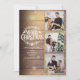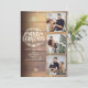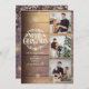 Un élégant design de vacances avec 3 cadres photo dans un style rustique à personnaliser avec vos photos préférées dans des cadres dorés, message, noms et année sur un fond en bois rustique. Le verso présente des flocons de neige tombant sur un fond en panneaux de bois rustique assorti. Conçu par Thisisnotme©