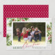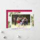 Cette carte de Noël à thème rustique propose une photo horizontale sur un arrière - plan de bois blanc agrémenté de branches de pins verdoyantes et de baies. L'accueil "Joyeux Noël" apparaît en vert foncé et rouge. Personnalisez cette carte avec votre nom de famille et votre année. Photographie © Storytree Studios, Stanford, CA