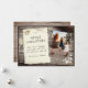 Rustic Wood Vieux Papier Script Joyeux Noël Famille Photo Carte de vacances. Une scène rustique avec bois, verdure et vieux papier avec un script sur le papier - customisez le texte et ajoutez votre photo.
