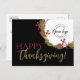 Célébrez l'esprit de gratitude et la joie de Thanksgiving avec notre carte postale personnalisée Bon thanksgiving Holiday. Cette carte est l'occasion idéale d'exprimer vos voeux et d'express à vos clients, collègues et proches. Élégant noir, arrière - plan élégant. Personnalisez cette carte en ajoutant votre logo personnalisé, votre message et votre nom d'entreprise, vous permettant de présenter votre marque et de faire une impression durable. Les mots "Bon thanksgiving" sont magnifiquement restitués dans un serif moderne et une typographie de style manuscrit, ajoutant une touche élégante et chaleureuse à vos salutations. Customisez également l'adresse de retour. Améliorez l'ambiance automnale avec nos superbes feuilles d'automne et l'illustration du feuillage, capturant l'essence des couleurs vibrantes de la saison et la beauté naturelle. Cette oeuvre apporte de la chaleur et un sentiment de célébration à la carte, créant un design visuellement attrayant et accueillant. En customisant cette carte de vacances, vous pouvez transmettre votre gratitude et vos souhaits de bien-être de manière personnalisée et significative. Partagez votre appréciation pour le soutien, la collaboration ou les relations que vous aimez, et faites savoir à vos destinataires qu'ils sont valorisés et rappelés pendant cette période spéciale de l'année. Notre Carte de Vacances Bon thanksgiving est le choix idéal pour les entreprises, les organisations ou les individus qui veulent express leur gratitude et célébrer l'esprit de Thanksgiving. Envoyez un message réfléchi et customisé qui reflète votre identité unique et répand joie et chaleur à tous ceux qui la reçoivent. Contactez info@lddesignloft.com si vous avez besoin d'aide avec ce modèle de conception. ©lddesignloft www.lddesignloft.com