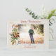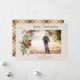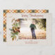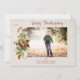 Conception de récolte rustique et colorée avec un modèle photo unique sur toile tissée rustique arrière - plan avec pulvérisation d'or, orange et rouge Feuilles d'automne et baies avec Bon thanksgiving salutation dans script de calligraphie personnalisée et champs de texte modifiables. Le dos dispose d'un motif tartan complémentaire pour coordonner les couleurs de l'automne.