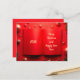Design élégant de carte photo de Noël avec un arrière - plan rouge vif avec des ornements dorés, des branches de pin festives et un cadre photo centré sur un plan de style livre ouvert. Personnalisable avec votre nom de famille et votre année, cette carte de voeux de vacances est parfaite pour envoyer des voeux de Noël joyeux à des amis et à des proches. Un magnifique mélange de minimalisme moderne et de charme de Noël intemporel.