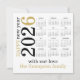 Joyeux Nouvel An 2026 Gold White Calendrier. Disponible numériquement ou imprimé. Une façon moderne et élégante d'envoyer vos voeux pour la nouvelle année - et pratique pour vos destinataires aussi! Avec l'année tourné et à gauche avec le 6 en or et le reste du texte en noir.