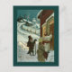 Salutation danoise pendant de bonnes nouvelles années. Les petits enfants dans le costume frappent sur une porte de cabine de rondin. Traduit au Norvégien : Godt Nytt AR"