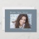 Cartes de vœux élégantes de style moderne bleu ardoise, cartes de vacances du Nouvel An avec "Bonne Année", votre nom et l'année dans une typographie fraîche et sophistiquée. Ce design présente votre photo de vacances mise en valeur par un cadre à dégradé moderne unique. Le verso de la carte comporte un espace de texte pour votre message personnalisé ou peut être laissé vide pour que vous puissiez écrire un message à la main si nécessaire. Téléchargeable, disponible en cartes imprimées de haute qualité pour un envoi postal standard ou en format de téléchargement numérique pour un envoi rapide et facile par SMS ou e-mail.