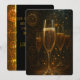Fêtez la nouvelle année avec glamour vintage et célébration pétillante. Ce design riche en détails présente un gros plan d'une flûte à champagne pétillant d'effervescence dorée, posé sur un fond d'engrenages ornés et d'une pièce d'horlogerie ancienne lumineuse. Parfait pour tous ceux qui veulent ajouter la fantaisie de l'élégance victorienne steampunk à leur nouvelle année.